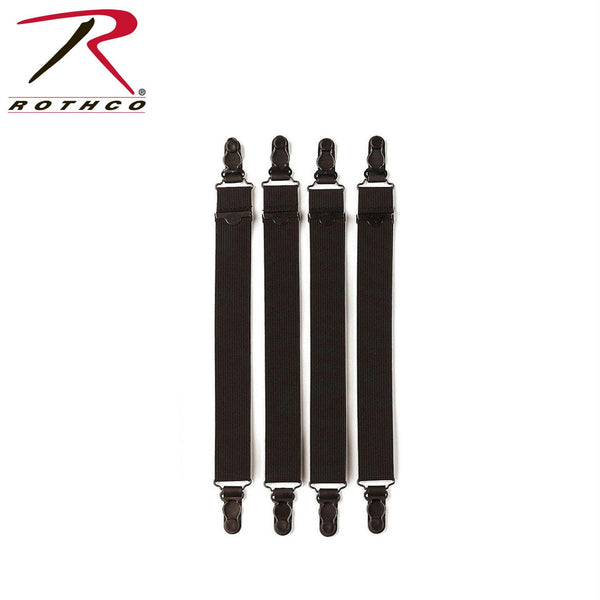 Rothco's Military Straight Shirt Stays come 4 per pack. Single clips attach to socks & shirt tail. Soft stretch fabric with metal adjusters. One Size Fits All.
