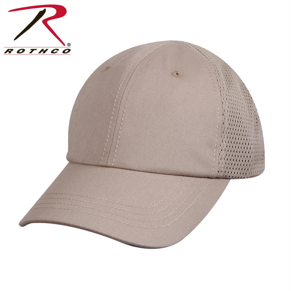 Breathable & Moisture Wicking; Rothco's Mesh Back Tactical Cap has been designed to keep you cool under pressure. The baseball style cap features four polyester mesh panels and 2 reinforced air vent holes for the ultimate in ventilation and comfort.